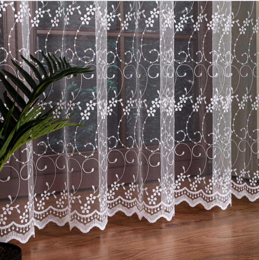 Firanka haftowana z motywem kwiatów sprawdza się jako samodzielna dekoracja lub w zestawie z zasłonami. Jest praktyczna w pielęgnacji, trwała i odporna na codzienne użytkowanie, co czyni ją funkcjonalnym i stylowym wyborem do każdego domu.